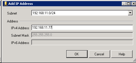 You’ll want to create new IP addresses for your listener that are not being used by the failover cluster itself. The IP addresses will be added to DNS automatically, as will be illustrated further down in the post. For example, currently on my servers I have addresses of 192.168.10.70 & 192.168.10.50 for one node, and 192.168.11.70 & 192.168.11.50 for the second node. For my IP addresses for the listener, I will add IP addresses of 192.168.10.77 & 192.168.11.77.
