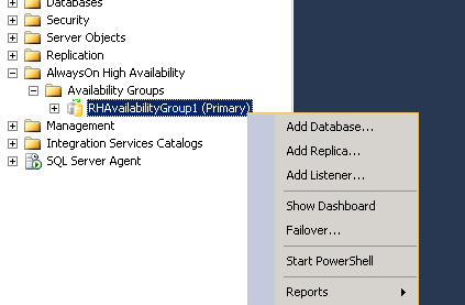 Now, let’s manually fail the database over and re-test. Go on the primary server, right-click on the Availability Group and click Failover…